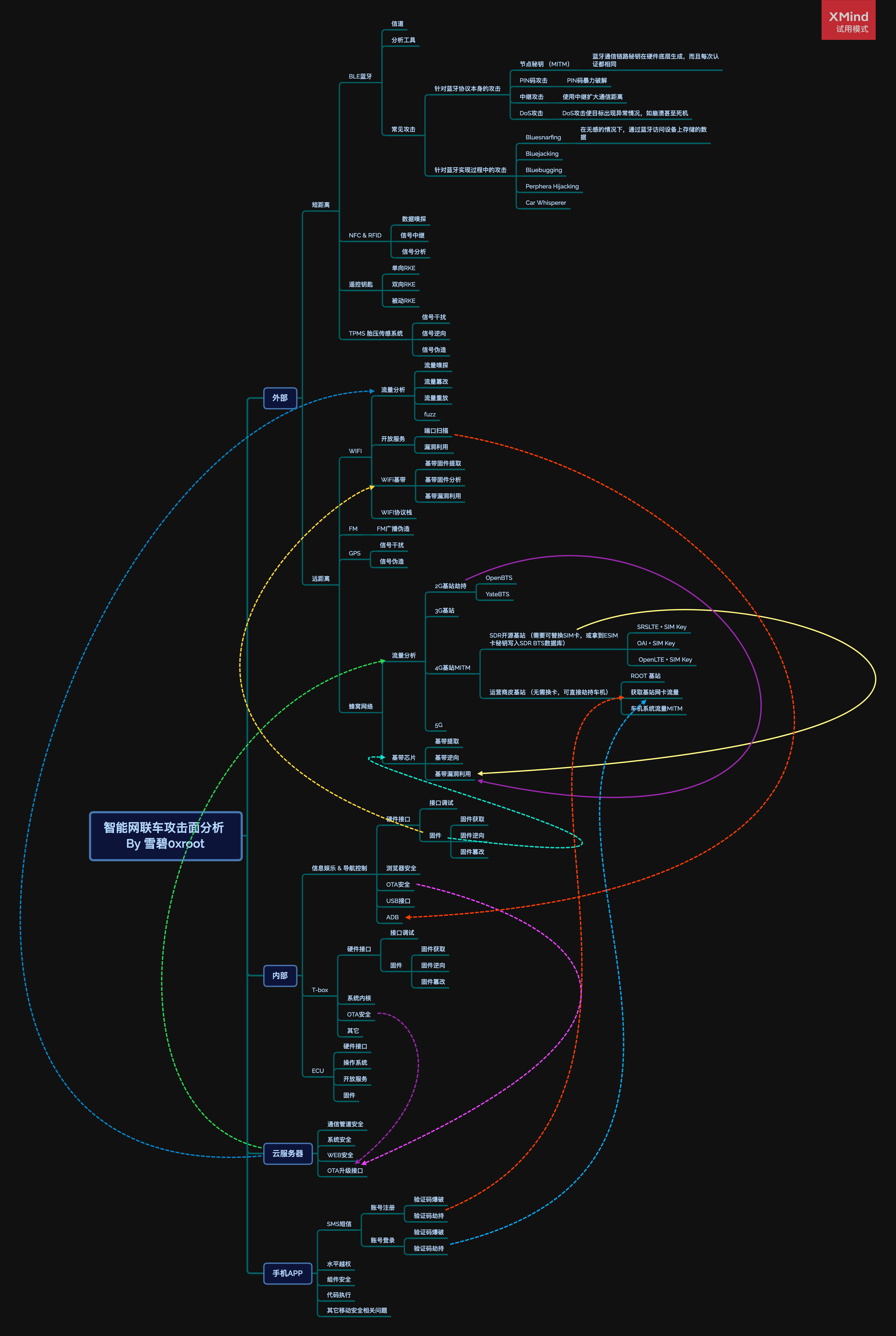 车联网攻击面思维脑图: