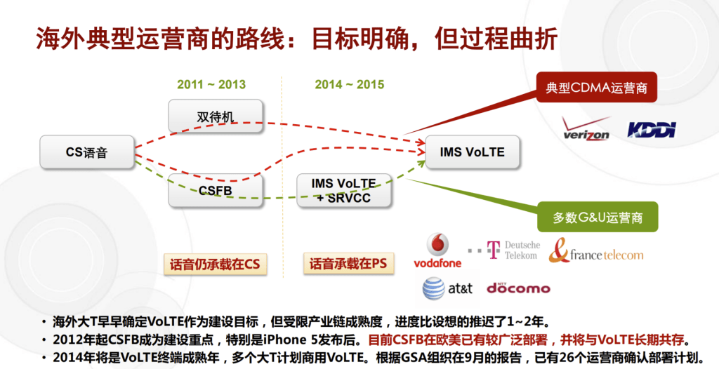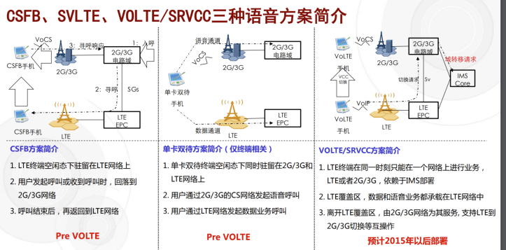 为了让用户在LTE网络下能够拨打语音电话,主要有三种解决方案:
