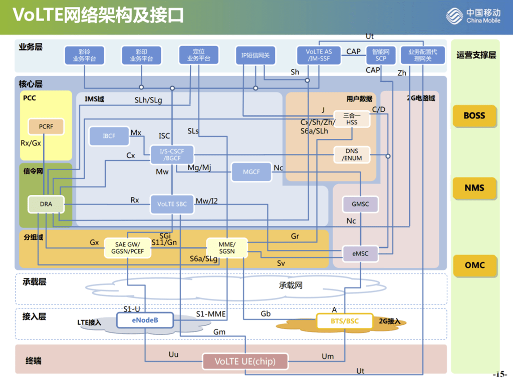 我们看到,LTE(EPC)并没有直接链路连接到CS网络(紫色部分),也没有媒体网关连接到CS网络,所以,此时的LTE网络并不支持CS语音。同样,在未引入IMS之前,早期的LTE网络也不支持IP语音。