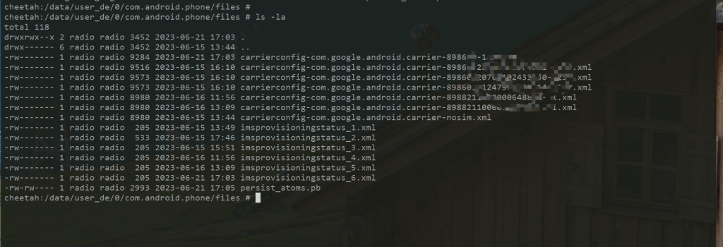 ROOT后在 /data/user_de/0/com.android.phone/files 导出carrierconfig-com.google.android.carrier-89*****.xml文件,