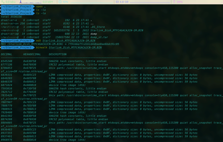 固件解包后的详细内容列表可在https://github.com/cn0xroot/Starlink_Reverse 找到