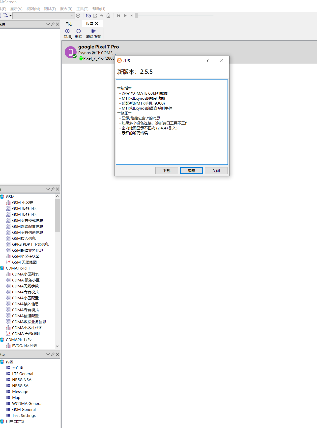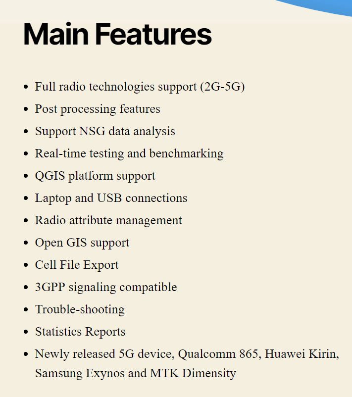 AirScreen is a windows based testing platform for voice and data service quality troubleshooting, RF optimization and engineering field work.